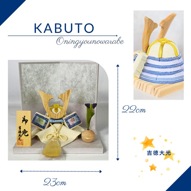 端午の節句 兜木目込み 水色兜 53673614 【サイズ】間口23×奥行23×高さ22cm 【初節句】 こどもが生まれて初めて迎える節句が「初節句」で、女の子は3月3日「桃の節句」、男の子は5月5日「端午の節句」にお祝いをします 端午の節句には、鯉のぼりや幟旗(のぼりばた)を揚げ、鎧兜や五月人形を飾り、菖蒲湯に浸かって、柏餅やちまきを食べます 鎧(よろい)や兜(かぶと)は身を護るもの、鯉のぼりは立身出世を願うものとしてそれぞれに役割があります 中部地方の一部や四国、九州の一部では、鯉のぼりの隣に、家紋と子供の名前を入れたる「幟旗」や「武者のぼり」という旗を掲げる風習があります 【外飾りと内飾り】 五月人形には外飾りと内飾りがあります 鎧や兜を飾るのは、江戸の武家社会から 生まれた風習ですが、庶民もこれにならい、ここから後に精巧な飾り兜が生まれました 日本の鎧兜には豊かな個性とその時代時代の最高の工芸技術が投じられてきました。風さわやかな五月五日、これら男性美に満ちた鎧兜を飾り、男児の健全な成長を祈るのは、日本古来の美しい風習なのです また、鯉のぼりや武者絵のぼりなどの外飾りは、わが子の立身出世を願い、子孫繁栄を知らせる大切なものとして、古くから建てられてきました