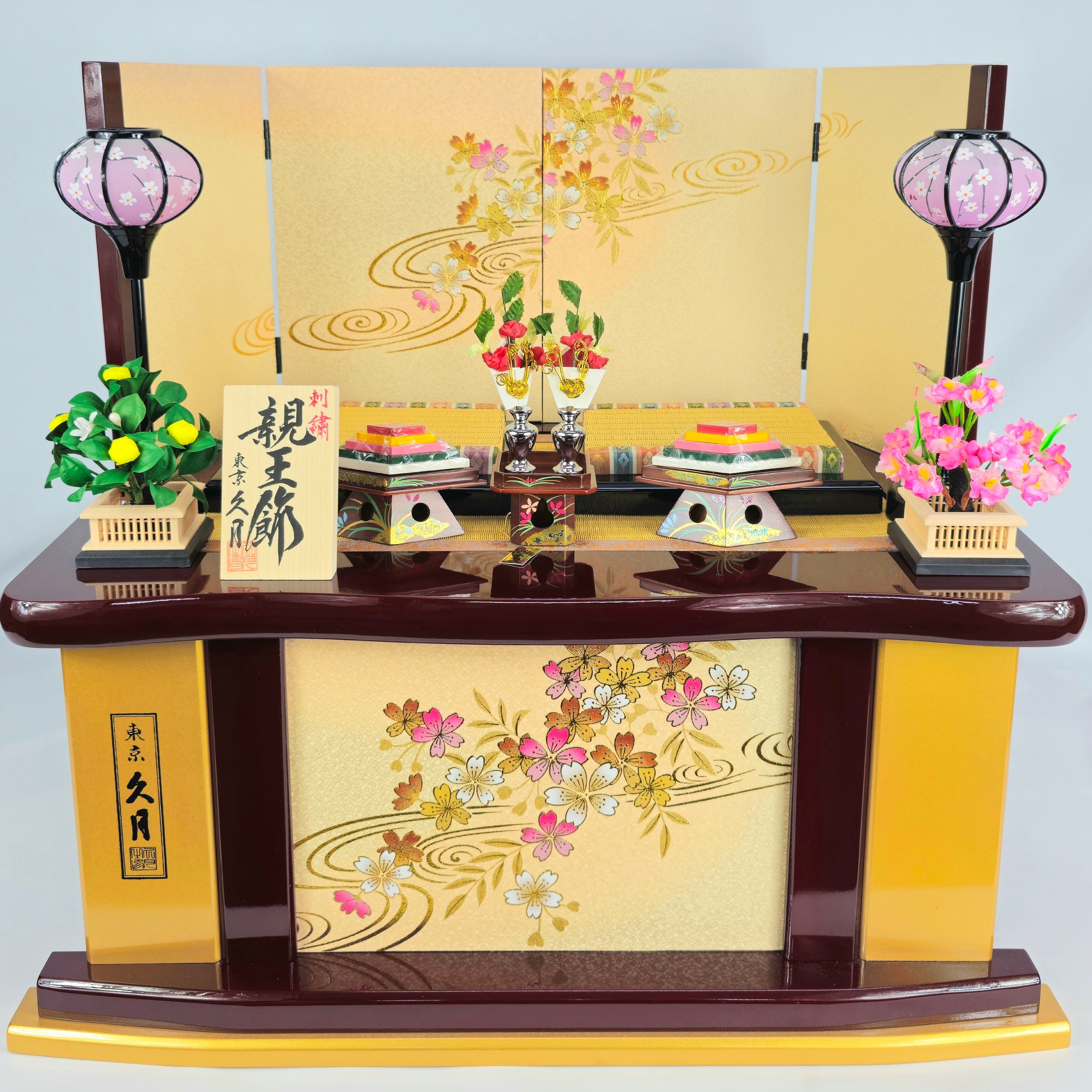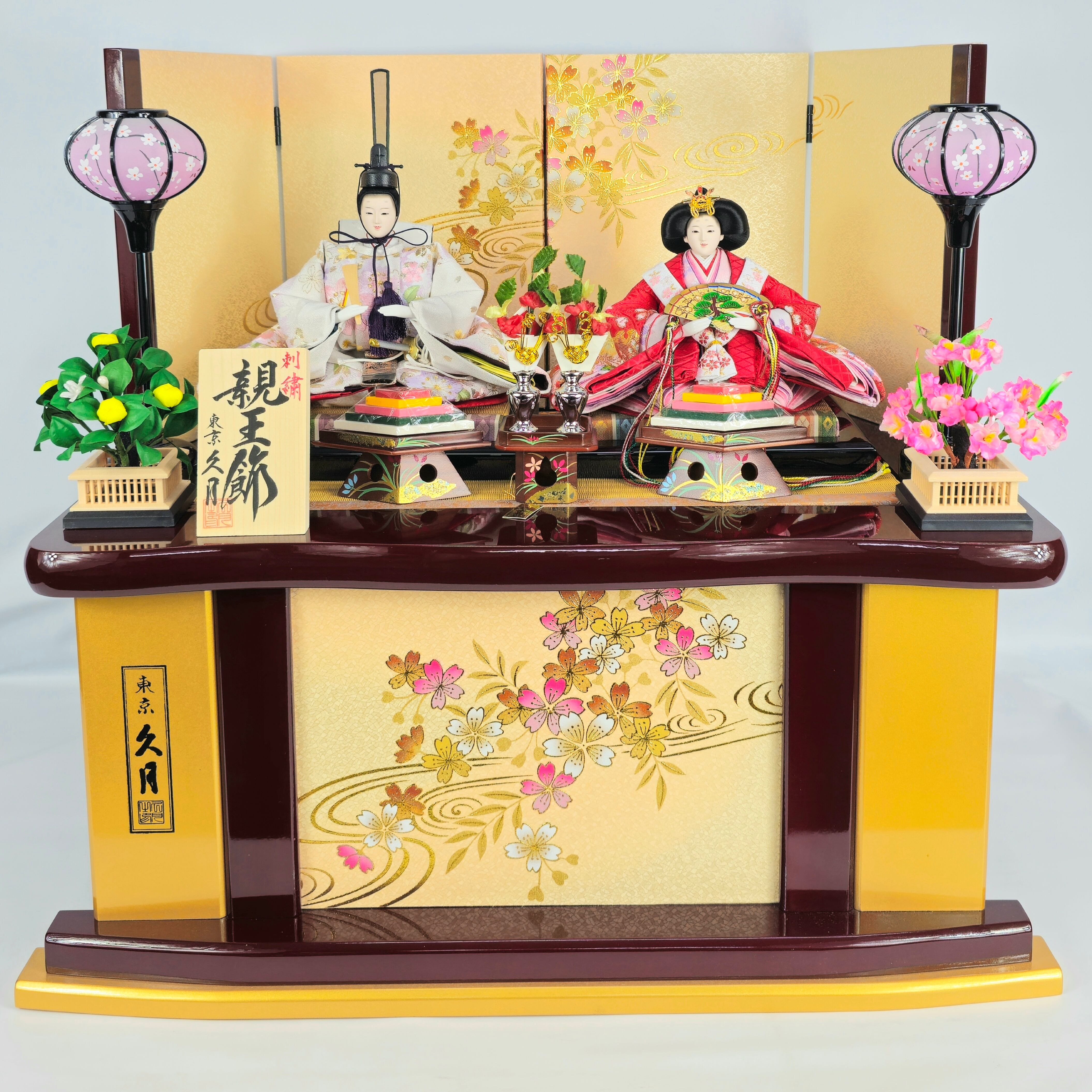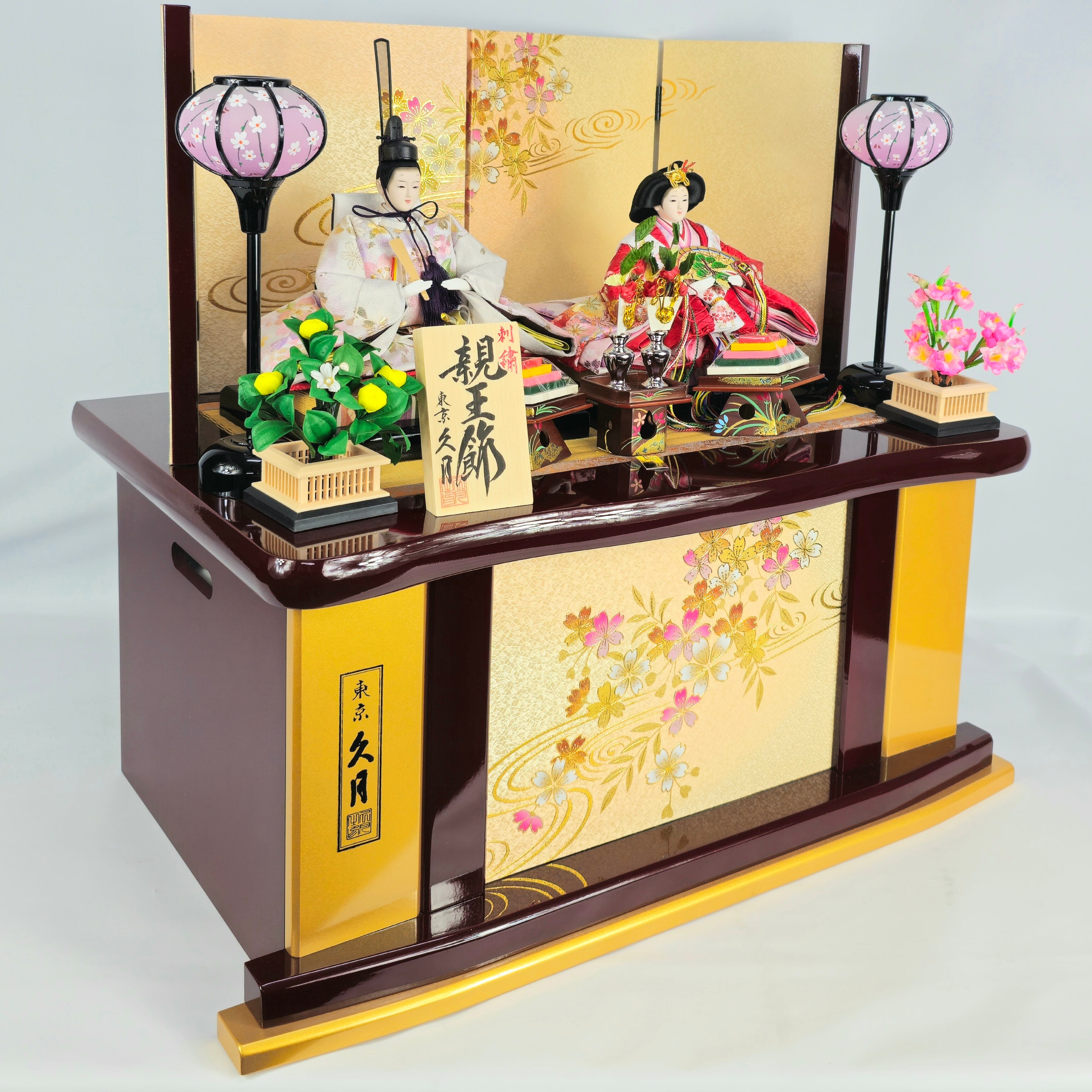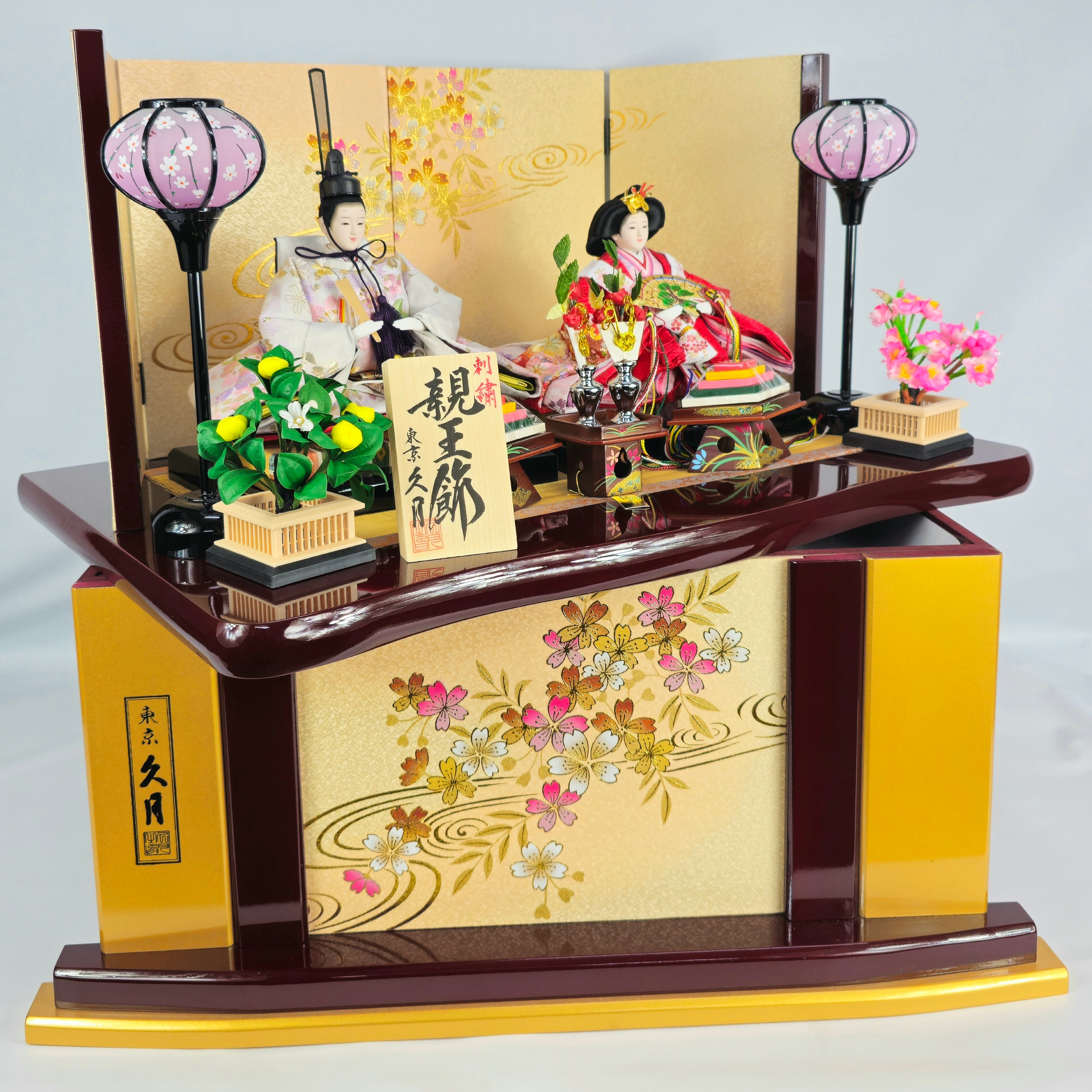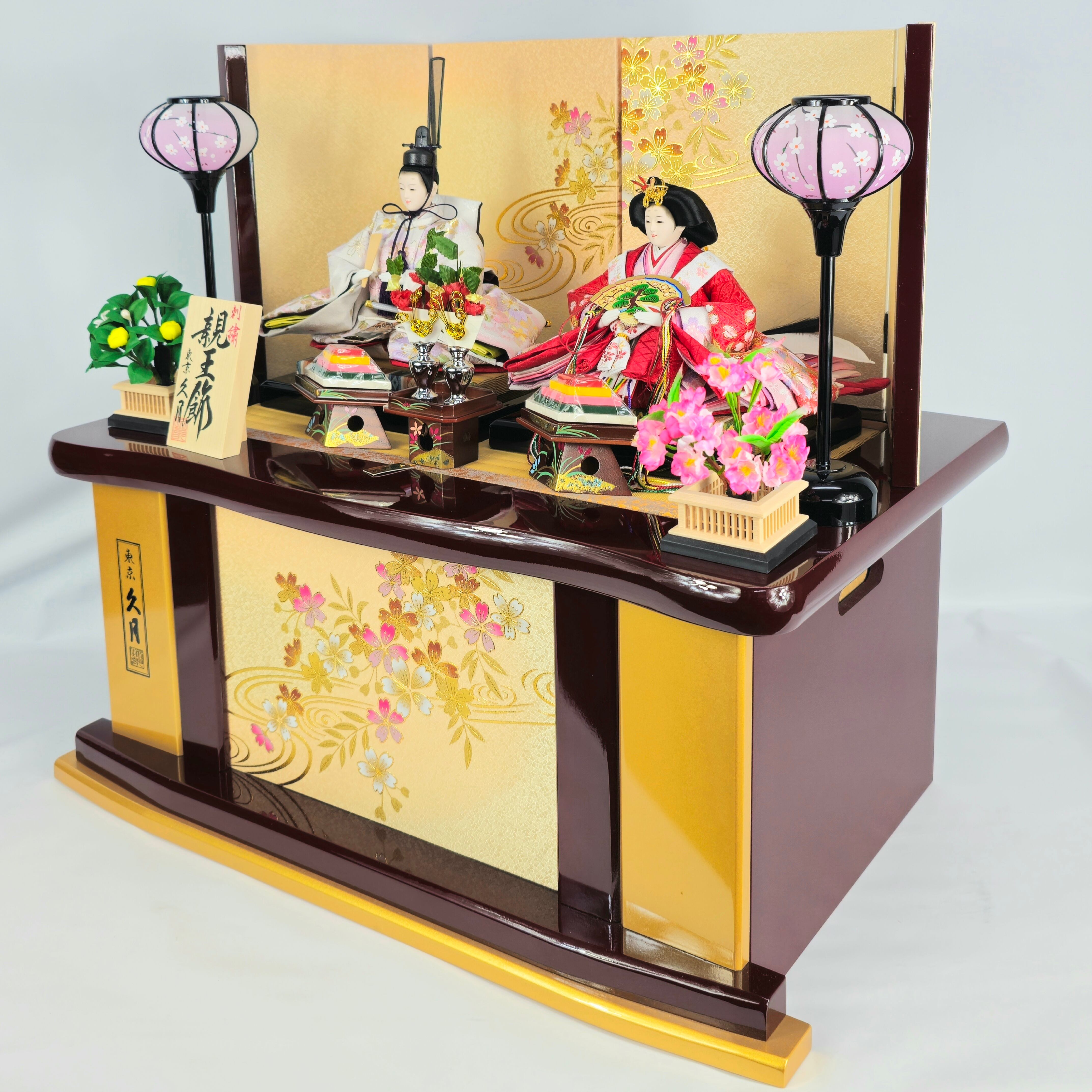 雛人形 ひな人形収納飾 人形の久月 親王飾り 金ワイン塗り桜流水金彩台屏風 S38248W16