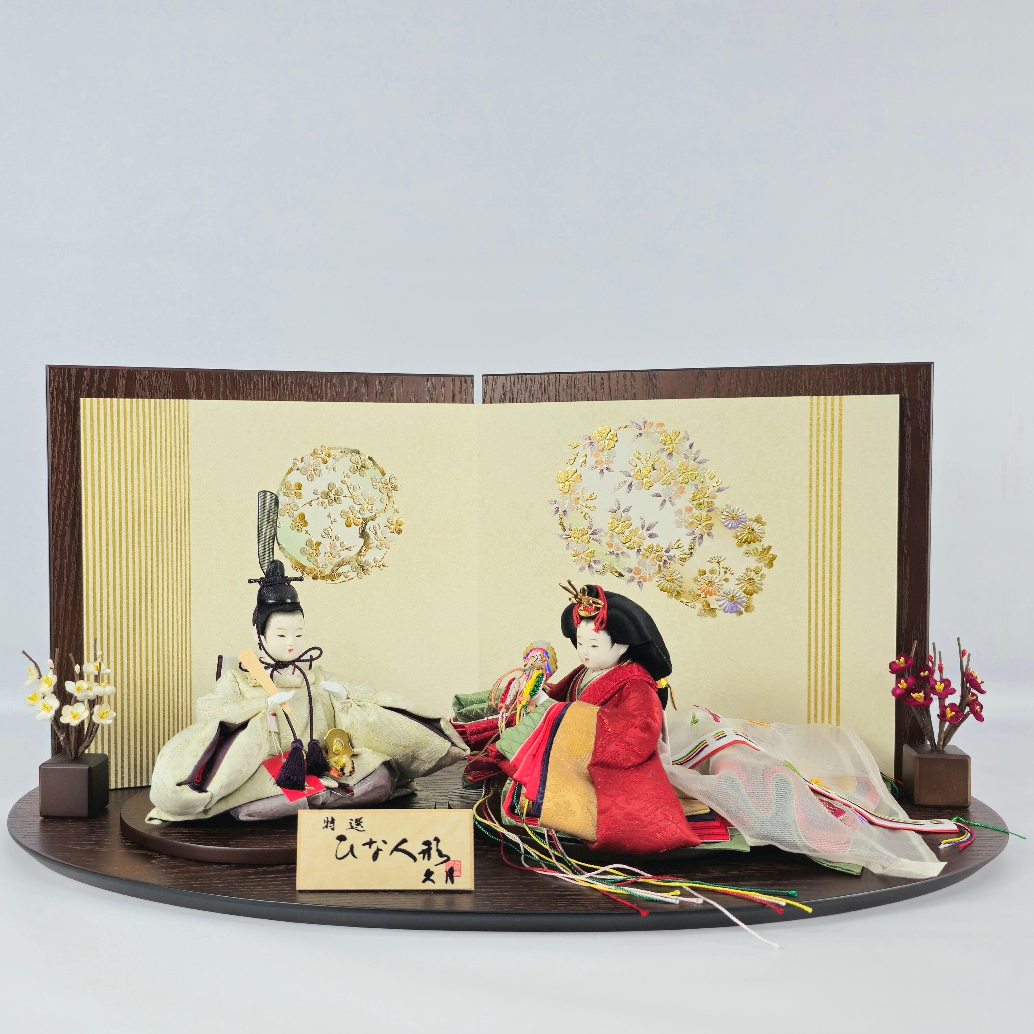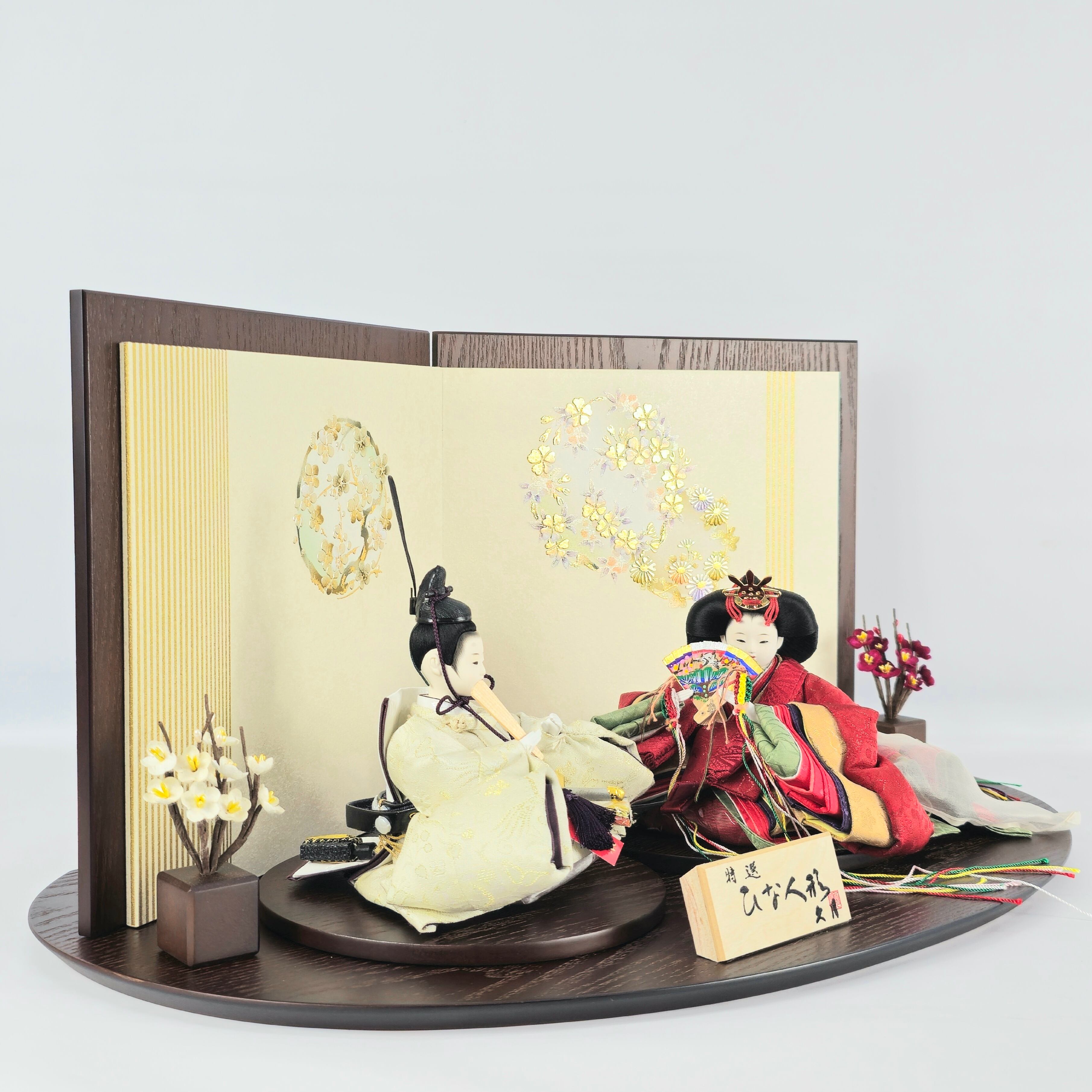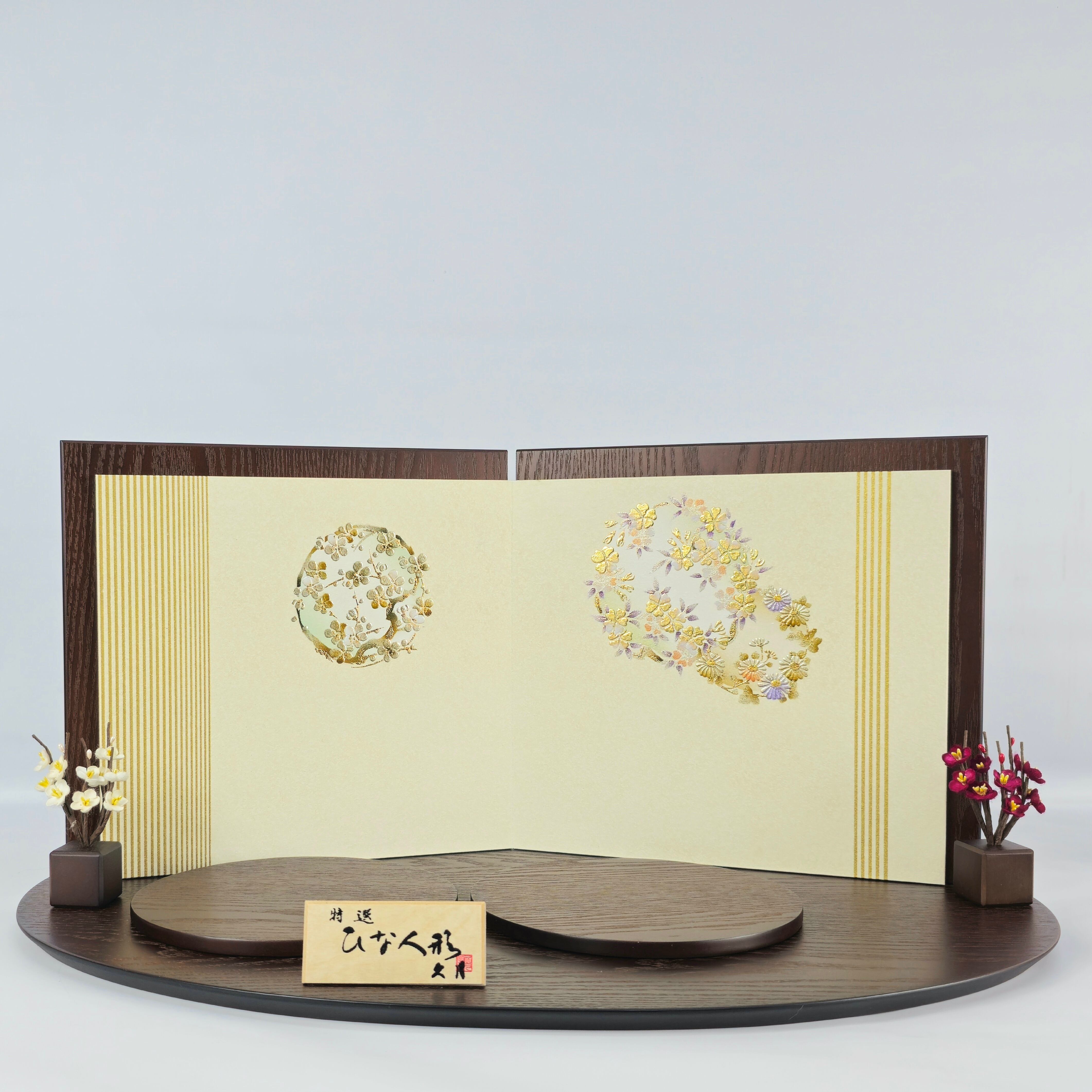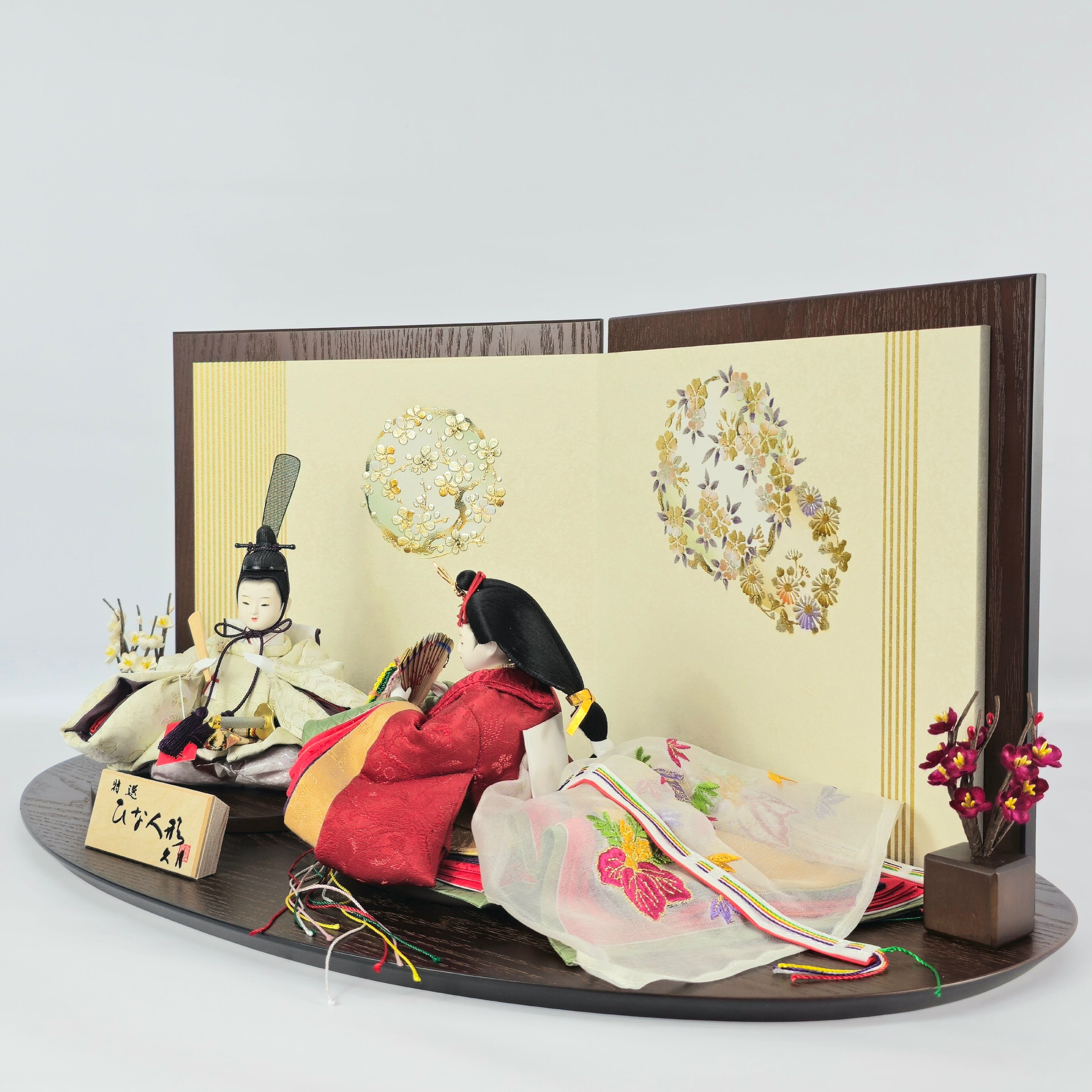 雛人形 ひな人形平飾 人形の久月 親王飾り 白木楕円台桜金彩金三曲屏風 S38410AW16