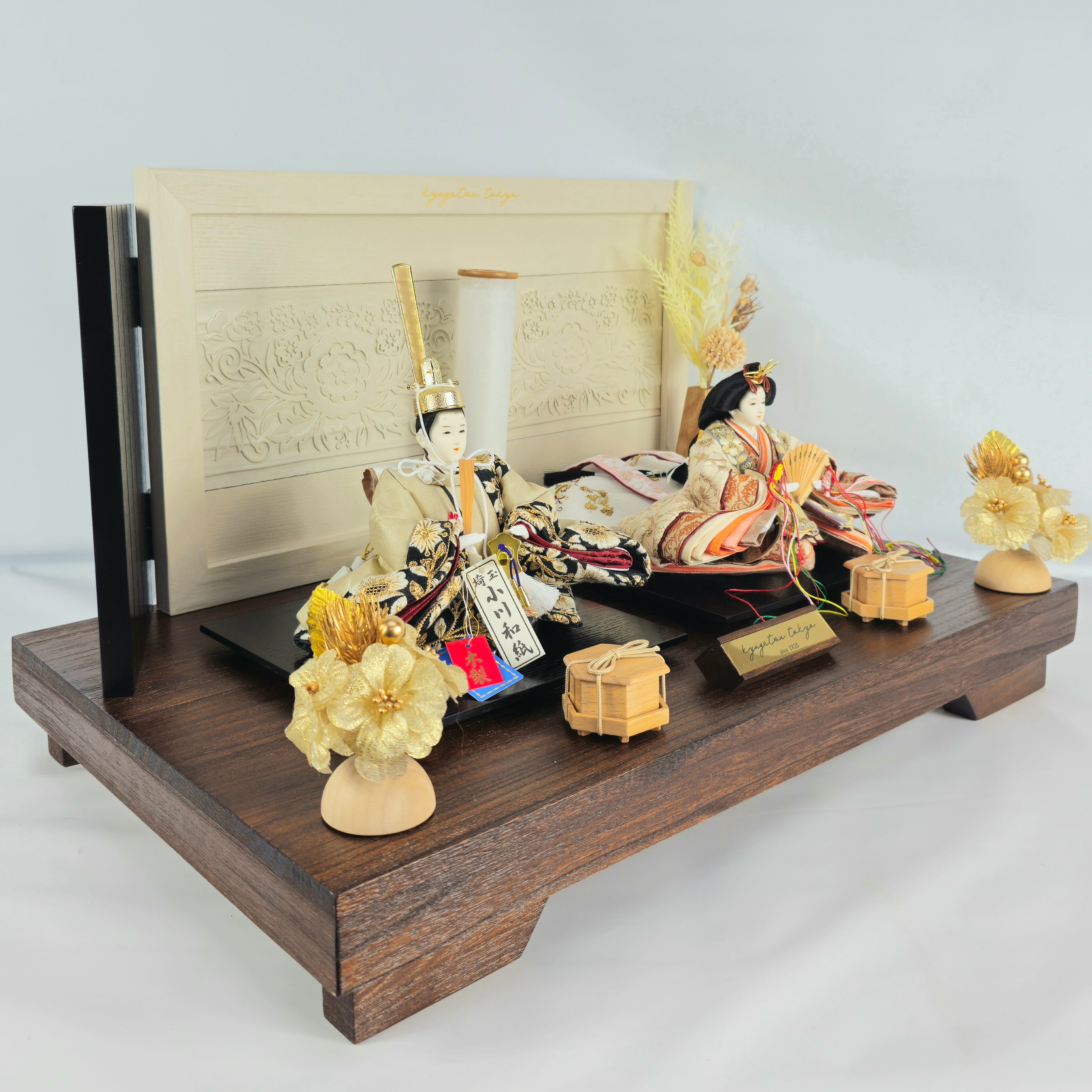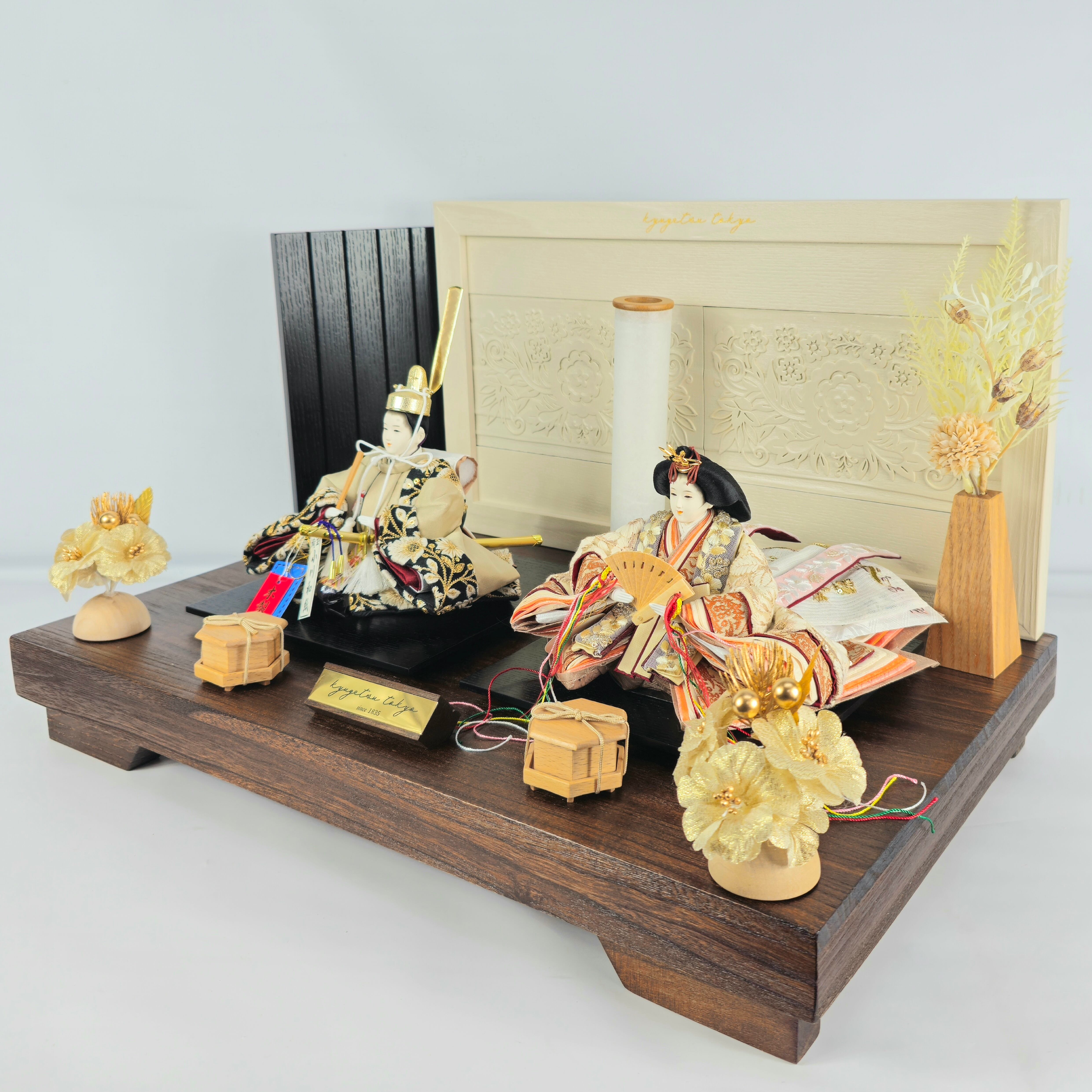 雛人形 ひな人形平飾 人形の久月 親王飾り 光匠 白木台四曲屏風 Q190616*