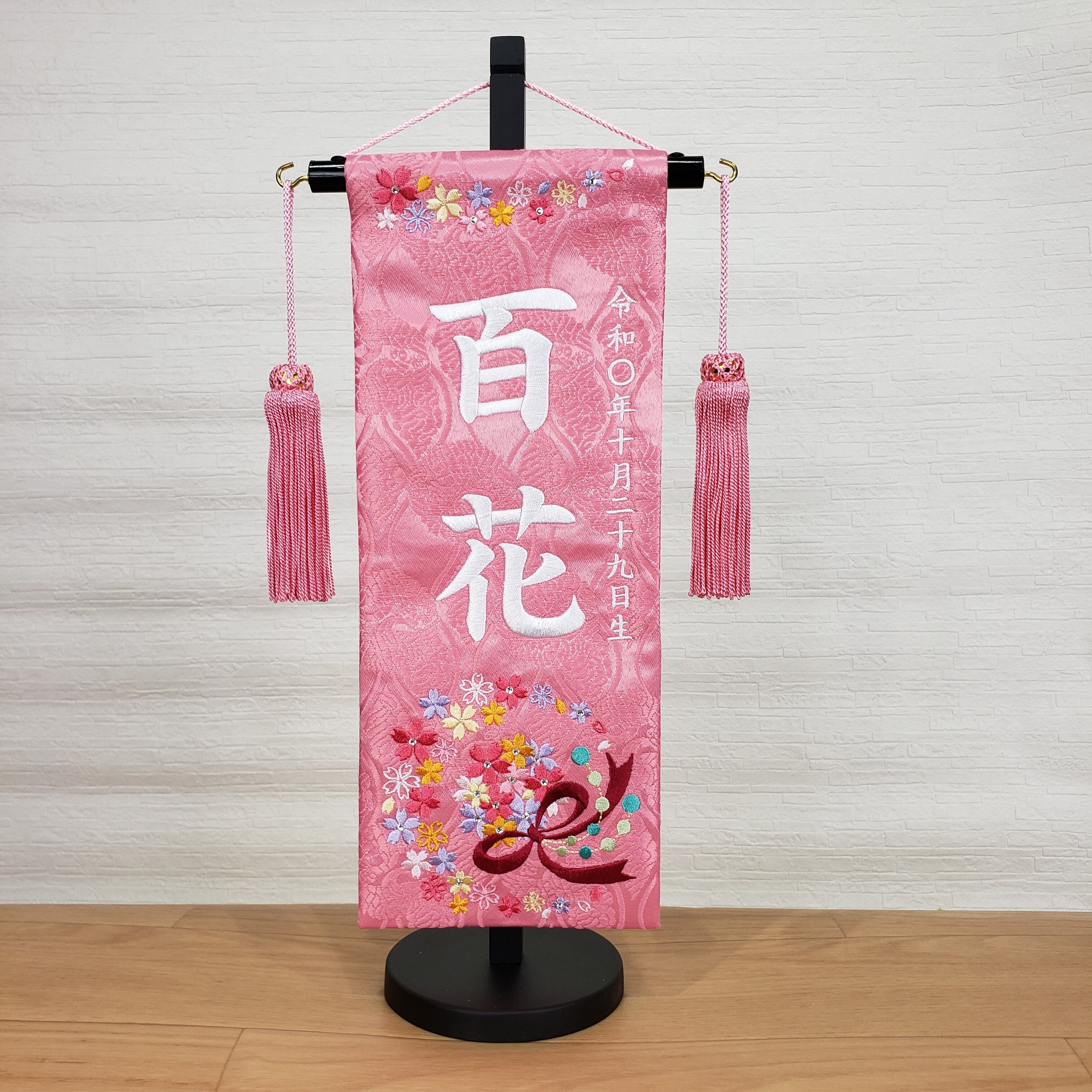 名前旗 桜まどかピンク スワロフスキー付き 小サイズ39 パール刺繍 桃の節句 女の子