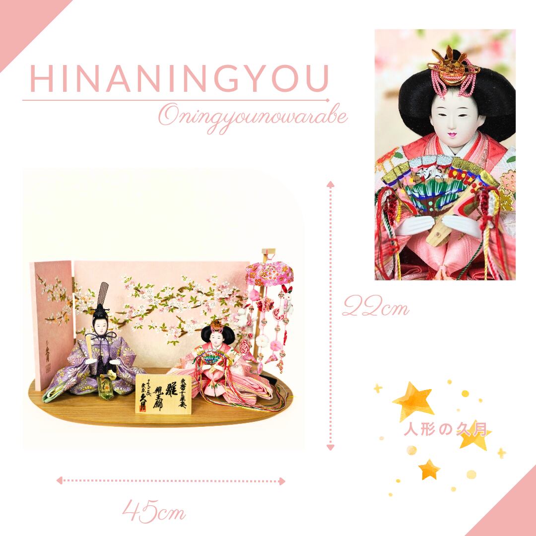雛人形 ひな人形 平飾 人形の久月 親王飾り 桜金彩ピンク二曲屏風つるし付き S37108w15