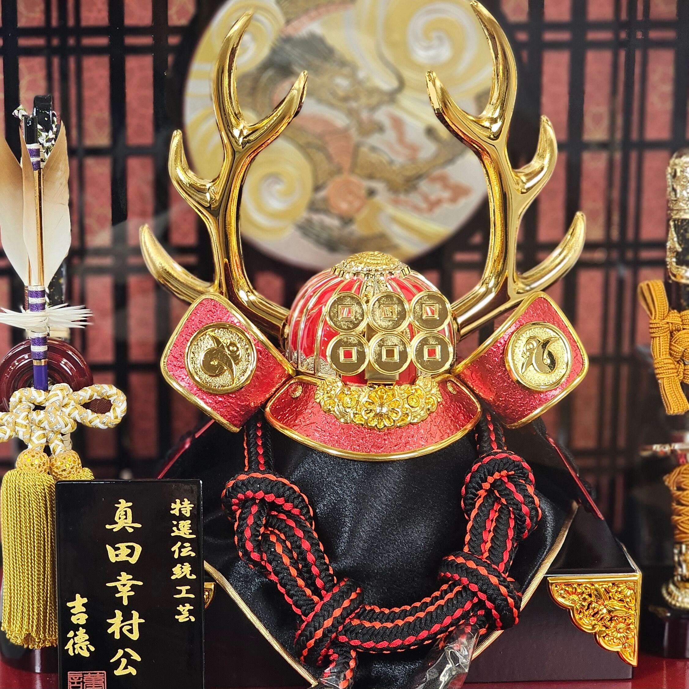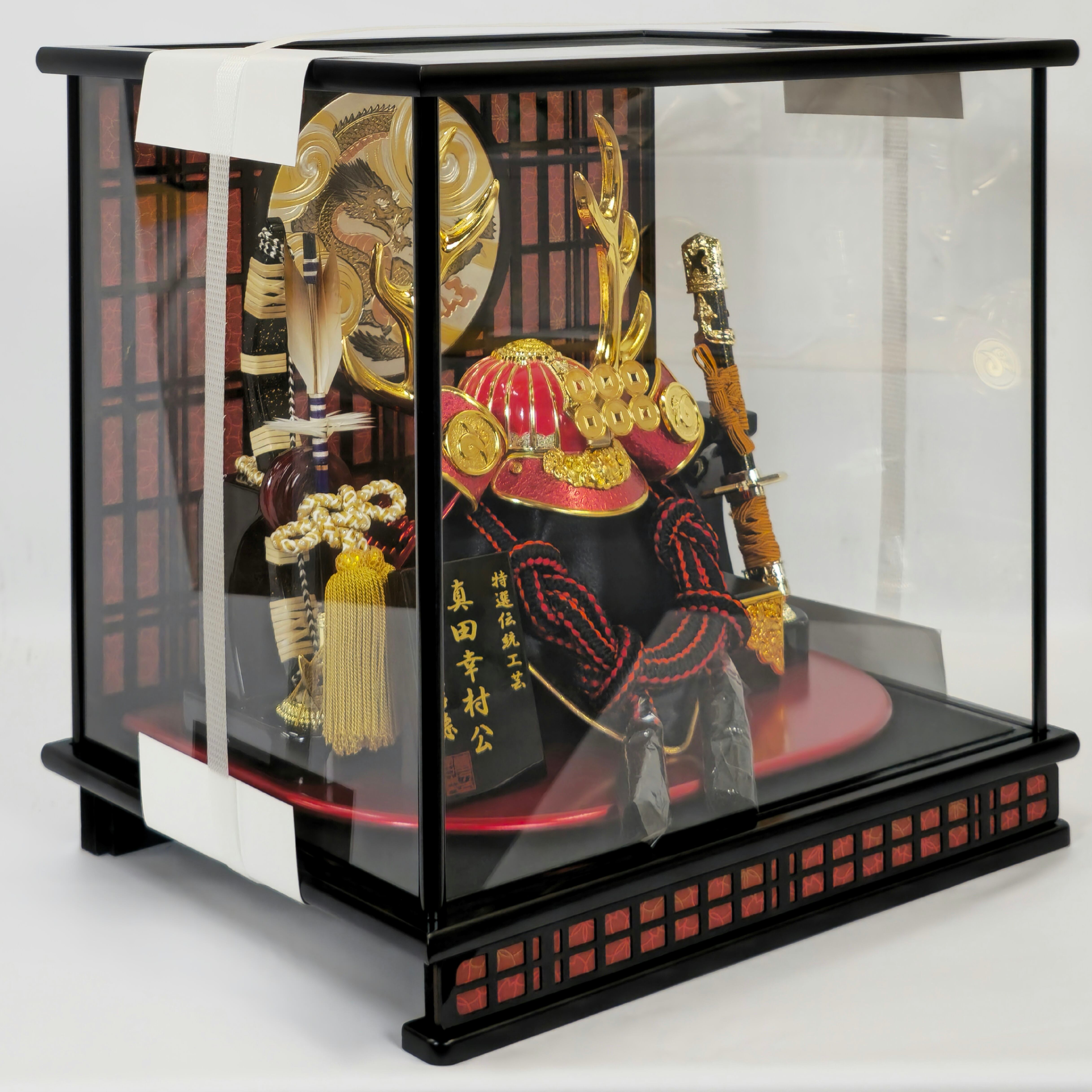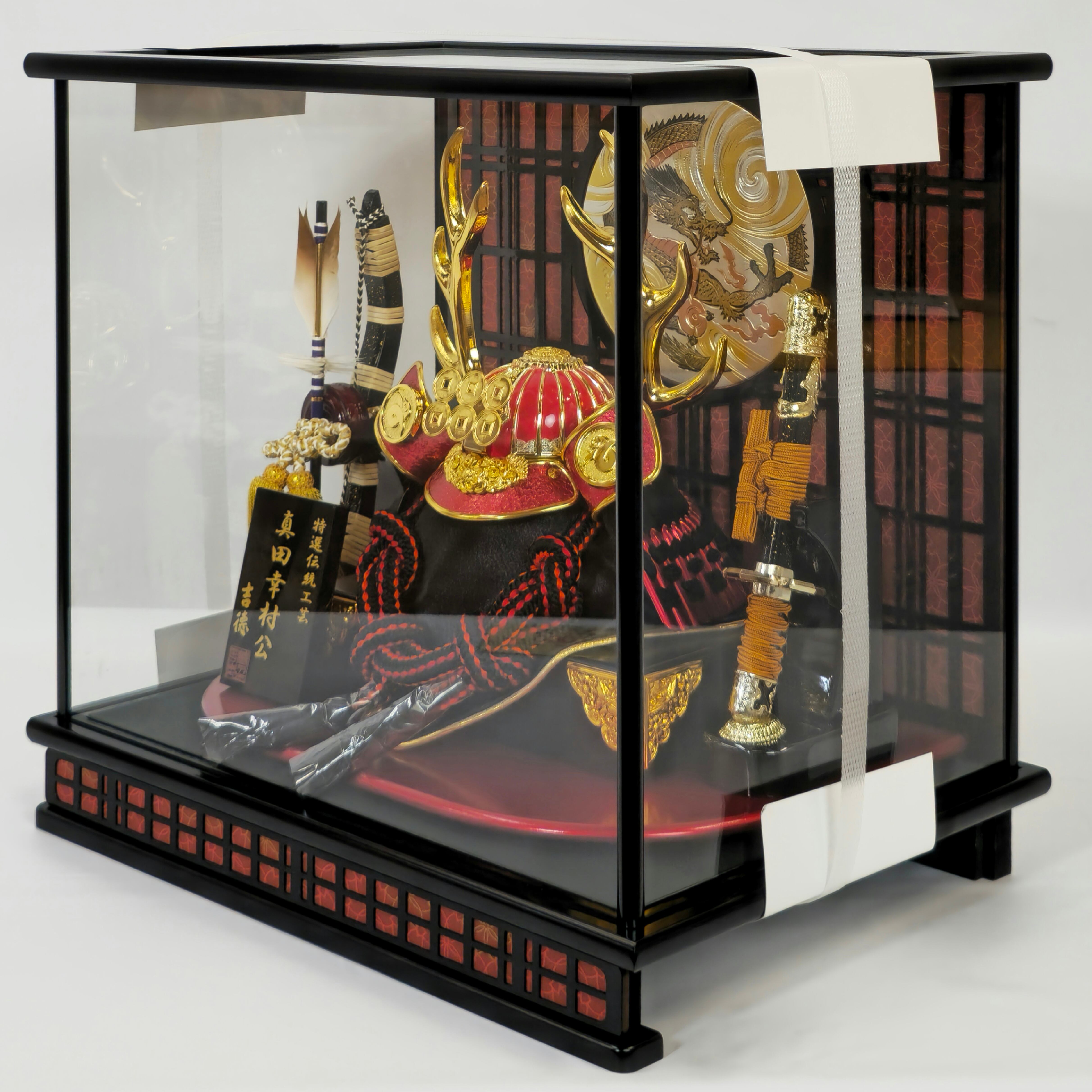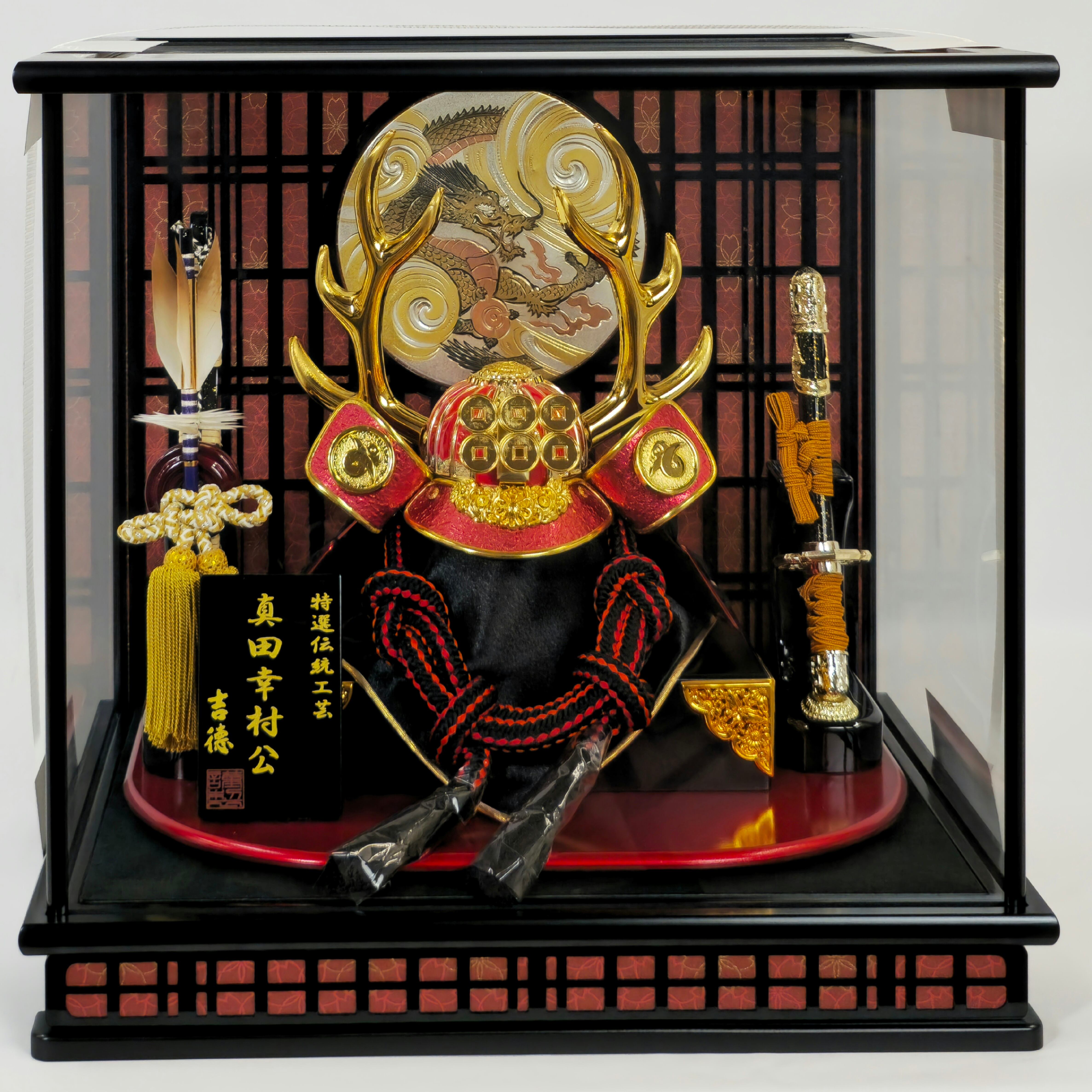 端午の節句 兜ケース飾り 格子バック赤 真田幸村 吉徳大光 53872915